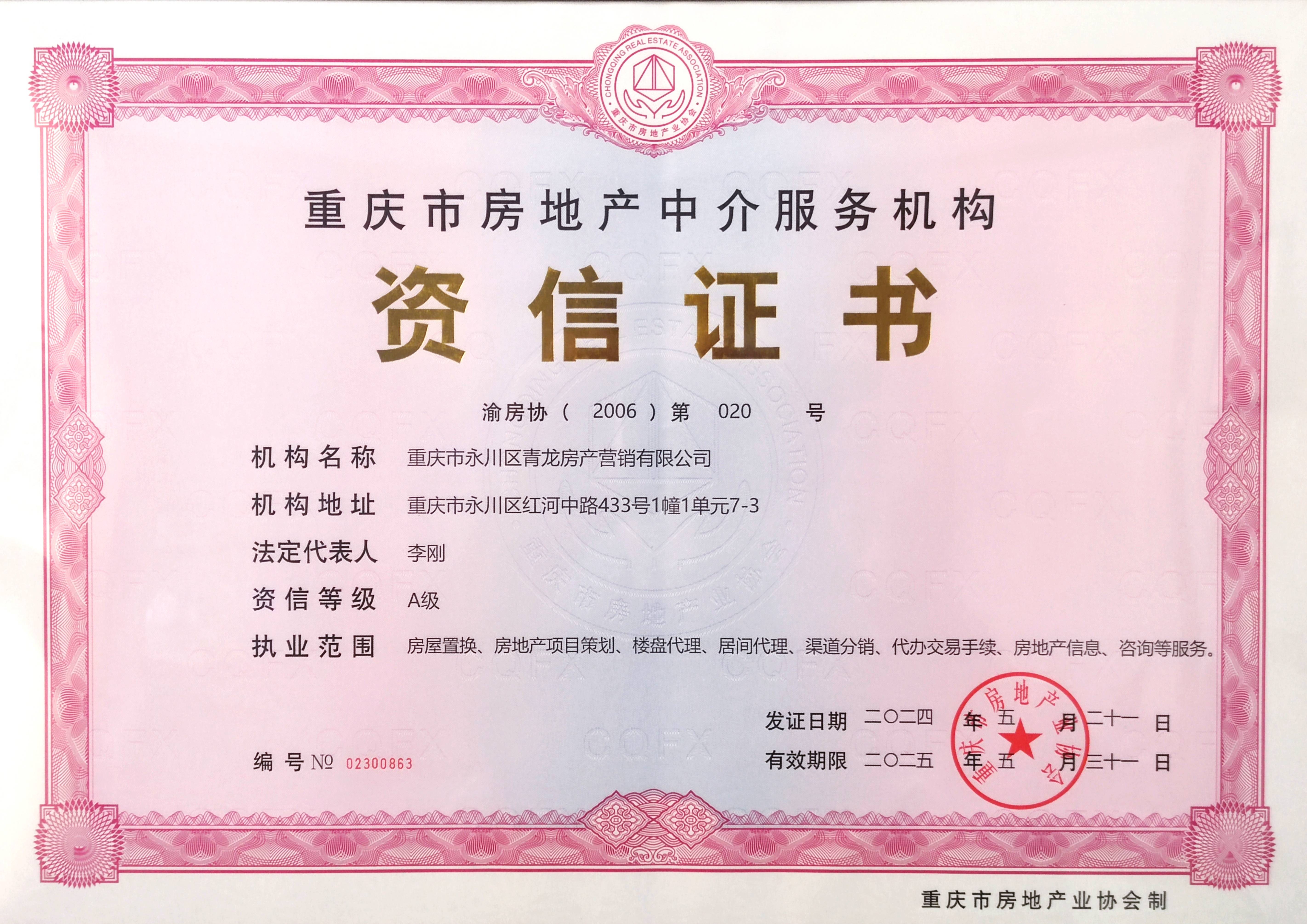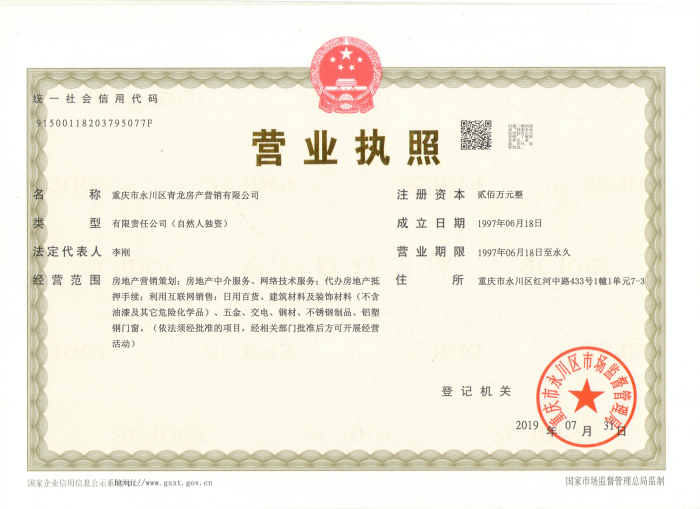 青龙房产是一家集房产全程营销策划、投资顾问、市场调研、销售代理等功能于一体化的专业房产机构。本公司注册资金200万元,持有《重庆市房地产中介服务机构A级资信证书》,具有独立法人资格。服务区域覆盖大足、荣昌、双桥、铜梁、潼南等整个永川本土市场外的渝西片区各城市。