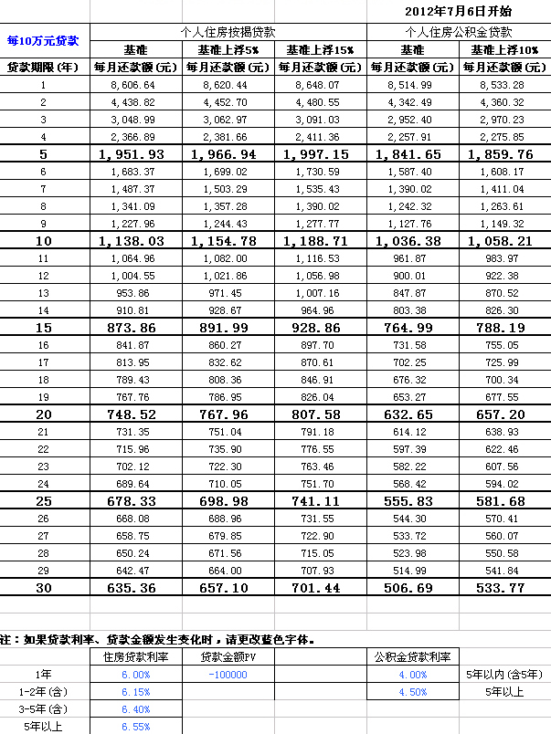 交通银行等额本息还款法每月还款本息表
